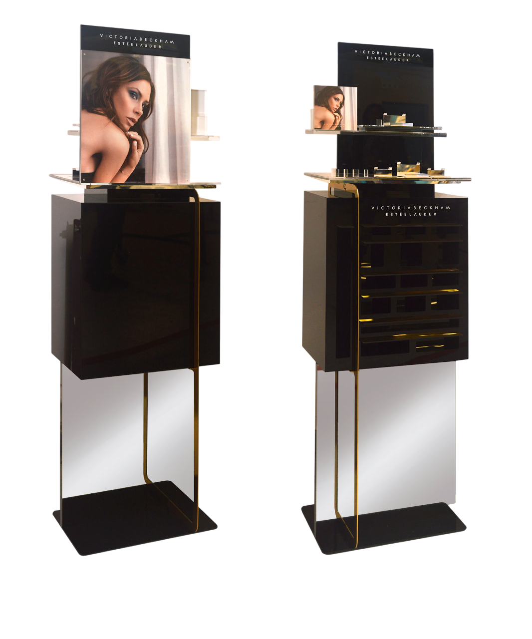 This metal display, created for the Victoria Beckham x Estée Lauder collaboration, reflects the perfect union between haute couture and luxury cosmetics. Its minimalist, elegant design captures London refinement in service of an exceptional capsule collection. A point-of-sale piece that blends aesthetics with exacting standards.
